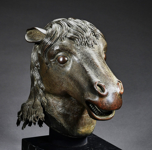 圆明园马首铜像,为清代圆明园长春园西洋楼建筑群海晏堂外十二生肖兽首喷泉主要构件之一。1860年英法联军侵入北京,圆明园惨遭劫掠焚毁,马首铜像与其他11尊兽首铜像一同流失海外。