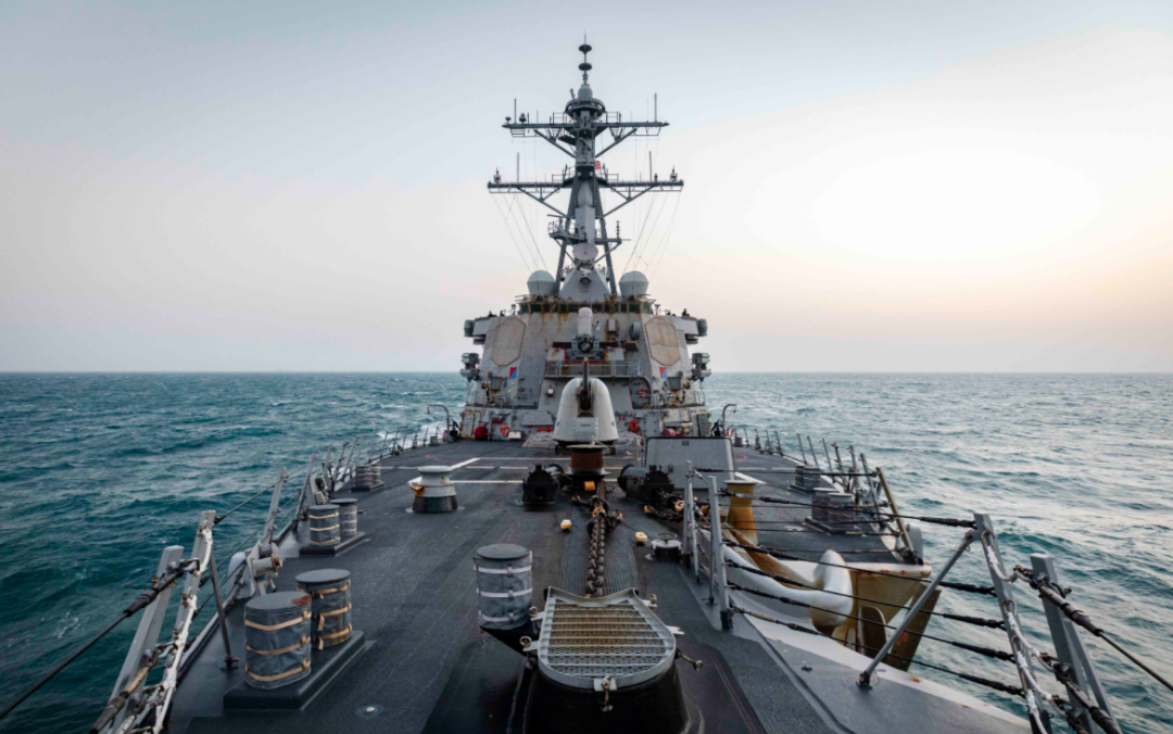美国第七舰队发布的“麦凯恩”号驱逐舰通过台湾海峡画面