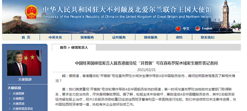 中国货船在直布罗陀水域发生爆炸致4伤 驻英使馆回应
