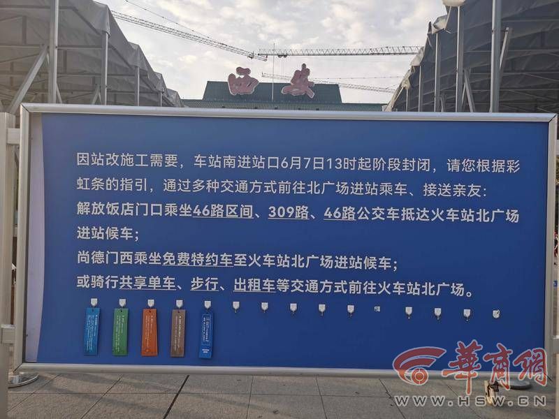 为推进西安站改工程建设,6月15日12时起,西安火车站南侧广场24小时全面封闭,旅客进站、出站、接站以及购票、退票、改签、行包托运等业务均在西安火车站北侧广场(丹凤门南侧)办理。