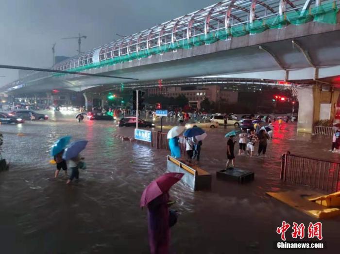 7月20日,河南出现持续性强降水天气,多地出现暴雨、大暴雨,部分地区出现特大暴雨。郑州市已提升防汛应急响应至I级,持续强降雨导致部分街道积水严重。中新社记者 阚力 摄