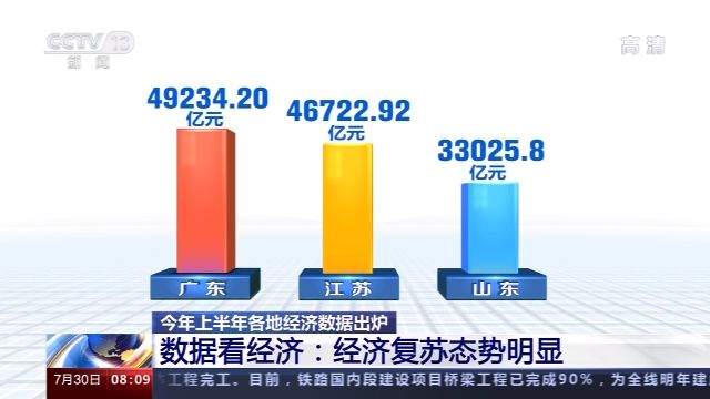 就经济总量而言,尽管突如其来的新冠疫情让各地经济增长在上半年承受了不小的压力,但传统经济大省继续领跑。广东省以49234.20亿元居于首位,江苏省紧随其后,为46722.92亿元,山东省则是33025.8亿元,居第三位。据统计,有6个省份的地区生产总值在上半年超过两万亿元,19个省份超过一万亿元。