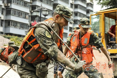 武警汉中支队官兵闻“汛”而动、听令而行,第一时间百余名官兵驰援略阳,帮助搬运救灾物资300余件,疏散群众5600余人,转移被困群众60余人,确保了驻地人民顺利度过洪峰。