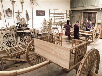 木轮大车的再次面世,也让木匠、铁匠、皮匠、绳匠等多个老行当的古法技艺之美,重新回到人们的视野。“这是农耕时代的‘活化石’。” 咸阳市渭城区文化馆工作人员余淑丹告诉记者,木轮大车填补了近代以来车木匠文献资料的空白,改进了车木匠技艺的传承方式。