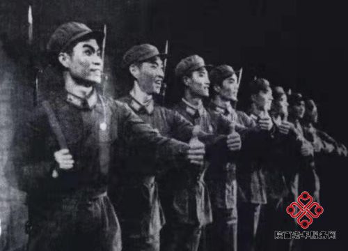 1964年发表在人民日报上《毛主席的战士最听党的话》演出剧照,左起第三人是姜培吾