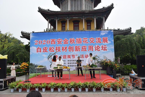 华商报讯(记者 魏光敬)为进一步推动西安市苗木花卉产业提档升级,促进苗木花卉生产经营、应用推广、市场销售等工作,结合新冠肺炎疫情下苗木花卉产业复工复产实际,创建文明城市、喜迎“迎双节”及十四全运盛会,“2020西安金秋插花交流·白皮松枝材创新应用论坛暨‘迎双节’”活动在西安市革命公园启动。