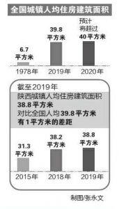 据《2020陕西统计年鉴》显示,截至2019年陕西城镇人均住房建筑面积38.8平方米,而对比全国人均39.8平方米,有1平方米的差距。