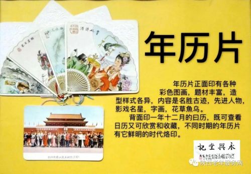过去每逢年节,各出版社、国家机关团体、企事业单位、部队、学校等都在出版自己的年历片,年历片已成为人民群众的一种不可缺少的文化生活用品,又是增进亲友之间交往的用品。于是,年历片风靡全国,收藏之势更加火热,形成了一派壮观的景象。