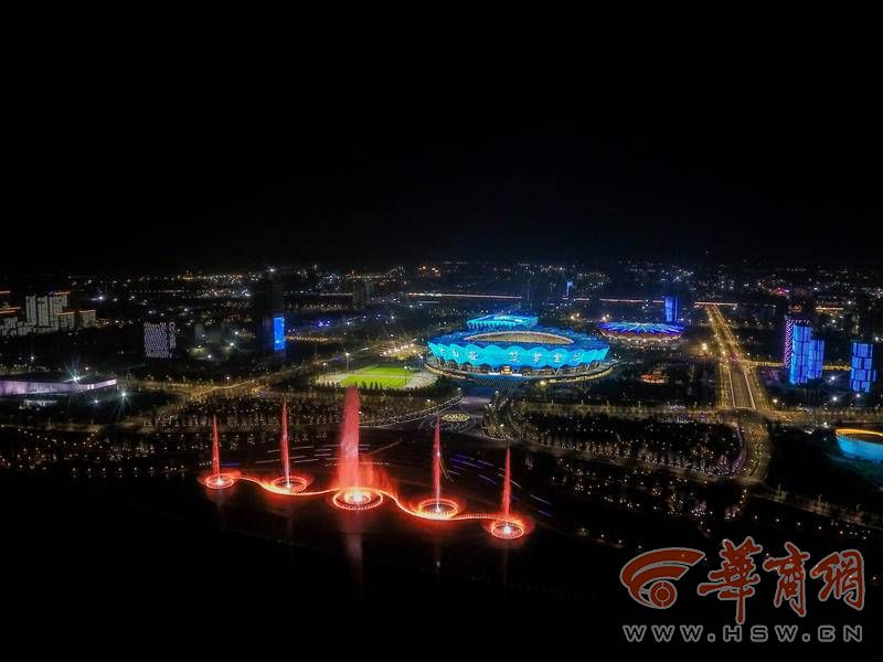 6月7日,在十四运会倒计时100天的特别日子里,将承担全运会和残特奥会开闭幕式等重大活动及赛事的西安奥体中心及周边区域上演灯光水舞秀,用光影与音乐喷泉表演为奥体中心的夜色添彩,迎接十四运盛会的到来。
