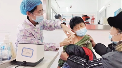 在未央区徐家湾社区卫生服务中心当天预约接种的孩子有400多人。王女士带着8岁的儿子前来接种,她说上周五老师通知家长,周末可以带孩子来此处接种疫苗,她通过手机预约接种时间是7日下午3时到3时30分。室外寒冷,但是接种点的医护人员特别热情,接种点室内特别温暖。徐家湾社区卫生服务中心计免科负责人敏倩告诉记者,7日气温骤降,为了不让孩子们在等候时感到寒冷,徐家湾社区卫生服务中心已经开启空调取暖,室内温度能达到22℃。