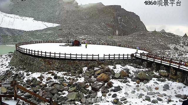 据了解,达古冰山是"离都市最近的冰山",距成都270公里,系现代山地冰川。达古冰山景区海拔4860米,由于海拔地势高,山顶一年长达多至10个月冰雪期,常年被积雪覆盖。所以,其实达古冰山八月飘雪,主要是由于海拔高,冷空气进入,气温比较低,从而满足了降雪条件。成都商报客户端记者|王明平
