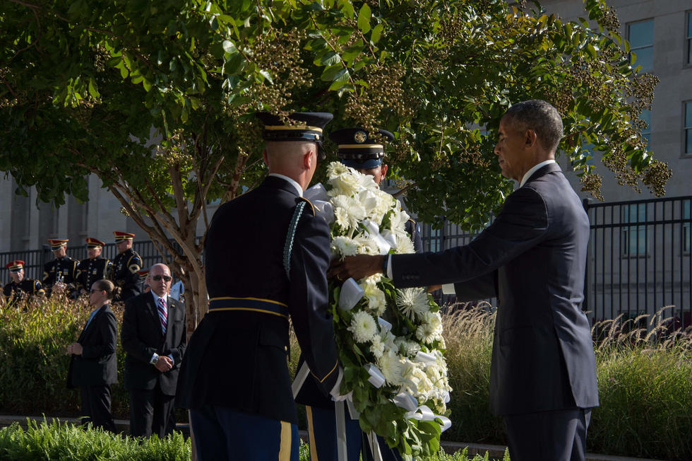 当地时间2016年9月11日,美国华盛顿,当地民众“9·11”事件15周年纪念活动,美国总统奥巴马出席。