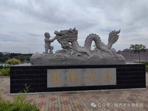 沿黄公路东端府谷县龙湾黄河岸边的匡胤戏水雕塑
