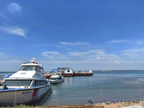 红碱淖景区游艇码头,对岸是内蒙古乌审旗