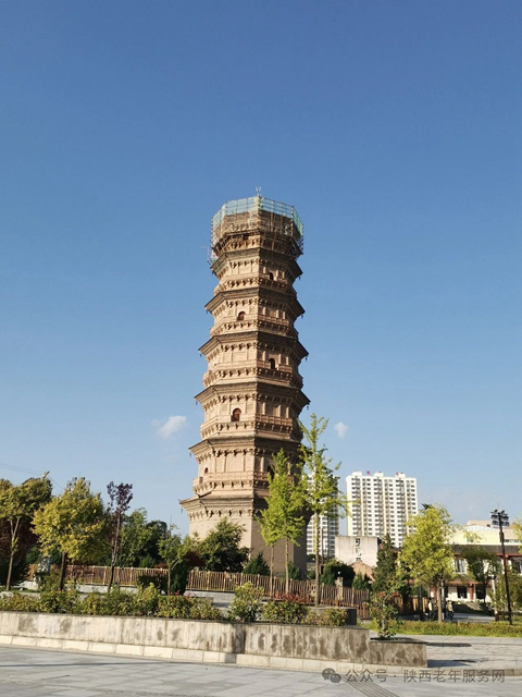建在旬邑县城的泰塔是国内少见的一座斜塔。前几年国家文物局拨款1500万维修矫正,经专业古建队伍施工有一定改观,但肉眼可见还是倾斜的。现在正在维修塔顶。