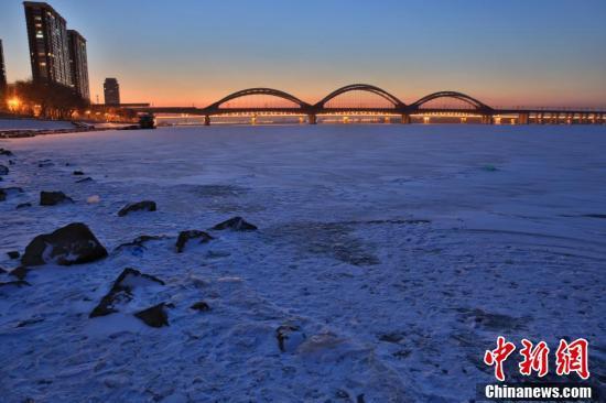 图为去年11月松花江哈尔滨段的“文封江”。