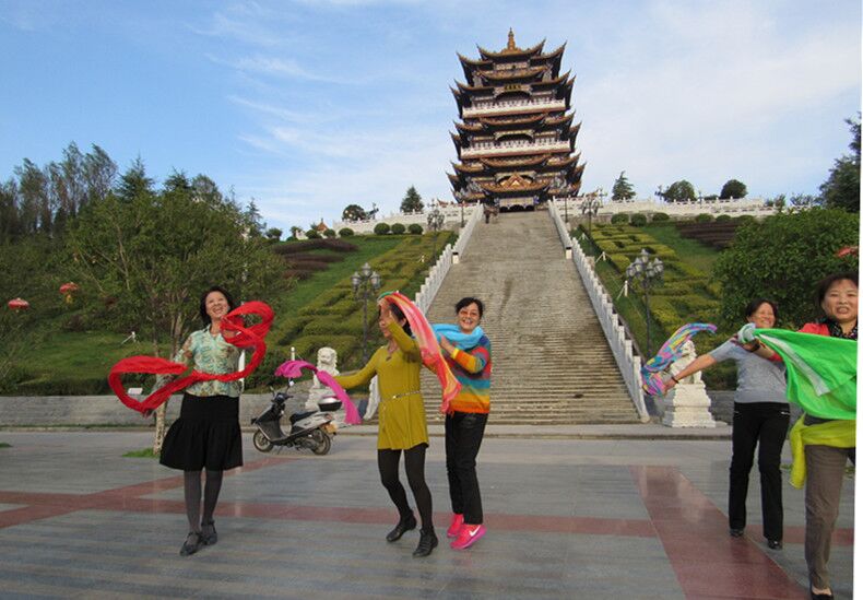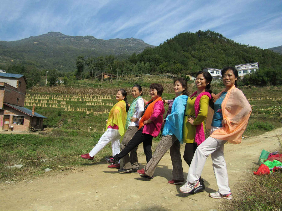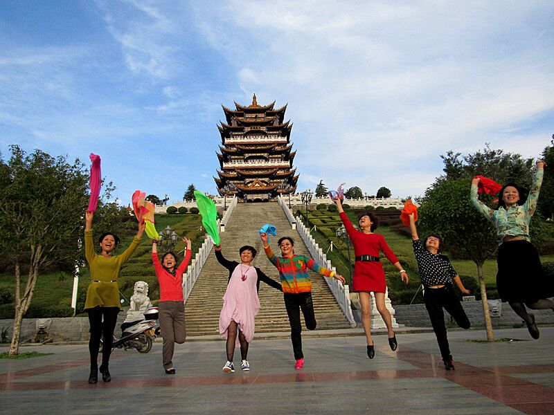 大家一起唱歌跳舞扭秧歌,登阁远望夕阳红,在欢笑声中度过了一个美好的下午。