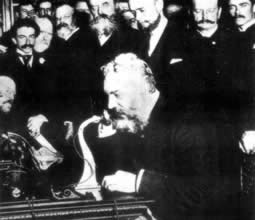 今天,在不同地点生活的人要直接联系,既不用寄信的方式,也不必亲自赶到对方所在的地方,他们只要通过电话这一工具即可办到。电话这个通讯工具是什么人,在什么时候发明的呢?电话的发明者叫贝尔。他原是苏格兰人,生于1847年。24岁时移居美国,不久加入美国籍。1873年他已是波士顿大学语言生理学的教授。一次,他企图通过一根电报线来同时传递几个信息。他的设想得到了妻子梅布尔.哈伯德与岳父的支持。梅布尔是聋子,以前是贝尔的学生。她父亲较富有,为女婿的科学试验慷慨解囊,提供必要的经济支持。