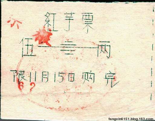 笔者收藏有几枚计划经济年代的红薯供应票,其中一枚印有“最高指示”的红薯票现在看来颇为有趣。这枚红薯票印制于1970年10月15日,是当时西安市建二公司202工程队职工食堂发给王友智40斤红薯的凭证。上面印有“最高指示”,内容为“红薯很好吃,我很爱吃,最好以后在粮食中配给一部分红薯。”(见图)