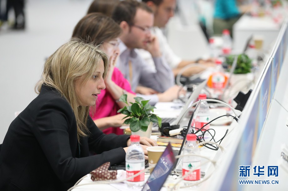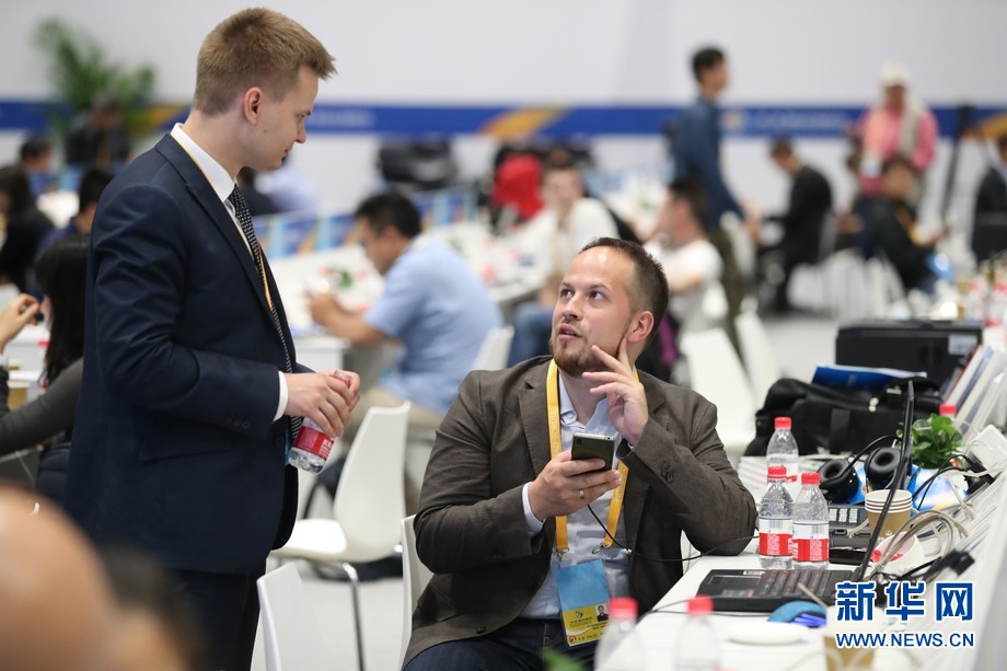 “一带一路”高峰论坛新闻中心忙碌的外国记者