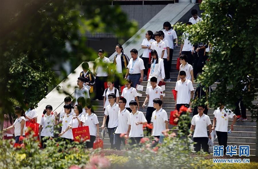 6月7日,在北京日坛中学考点,结束首场科目考试的考生走出考场。当日,2017年高考拉开帷幕,全国高考报名考生共940万人。