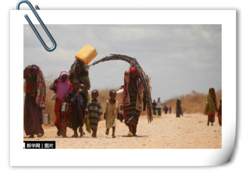 2017年3月26日,在索马里拜多阿,人们为了躲避旱灾携带行李走向一处临时难民营。FEISAL OMAR/路透