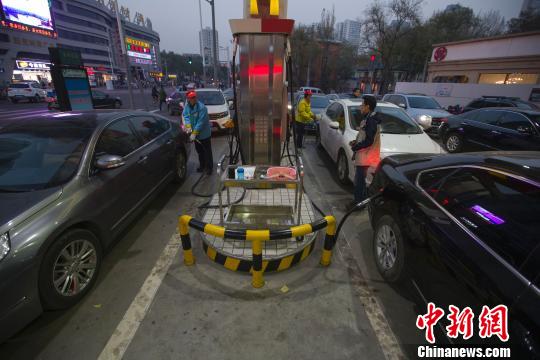 山西太原,加油站工作人员正在给车辆加油。 张云 摄