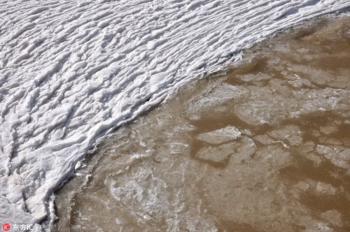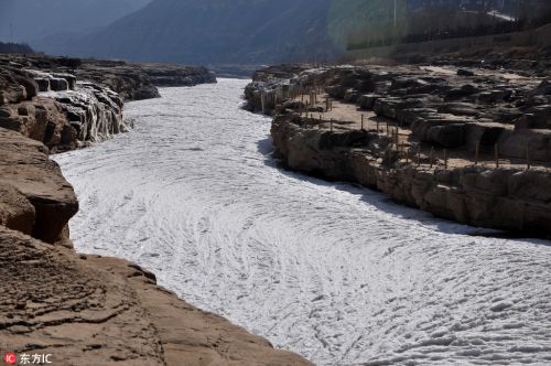 黄河壶口瀑布现流凌封河景观 十里龙槽已完全被冰凌覆盖