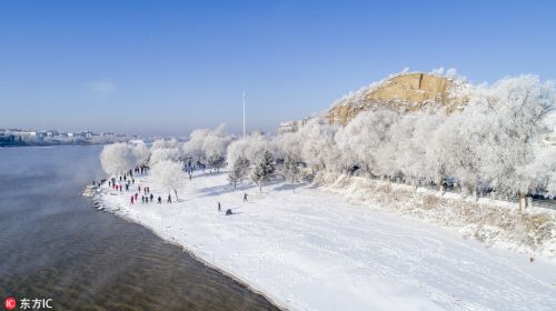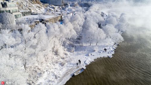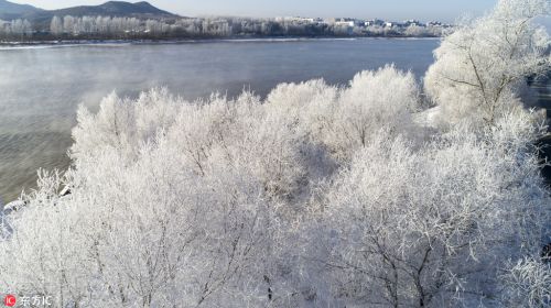 2017年12月14日,吉林市松花江畔十里长堤出现了今冬首场大面积的雾凇奇观(航拍图)。 在第23届吉林雾凇冰雪节开幕(12月15日)的前日,吉林市松花江畔出现今冬首场大面积的雾凇奇观。雾凇岛、阿什小雾淞岛出现四星级的高等级雾凇,甚至连城区松花江畔的松江中路和江滨公园都出现了三星级较大规模的雾凇。十里长堤,简直就是“忽如一夜春风来,千树万树梨花开”的壮美景观,吸引了众多市民及远近游客。朱大鹏/东方IC