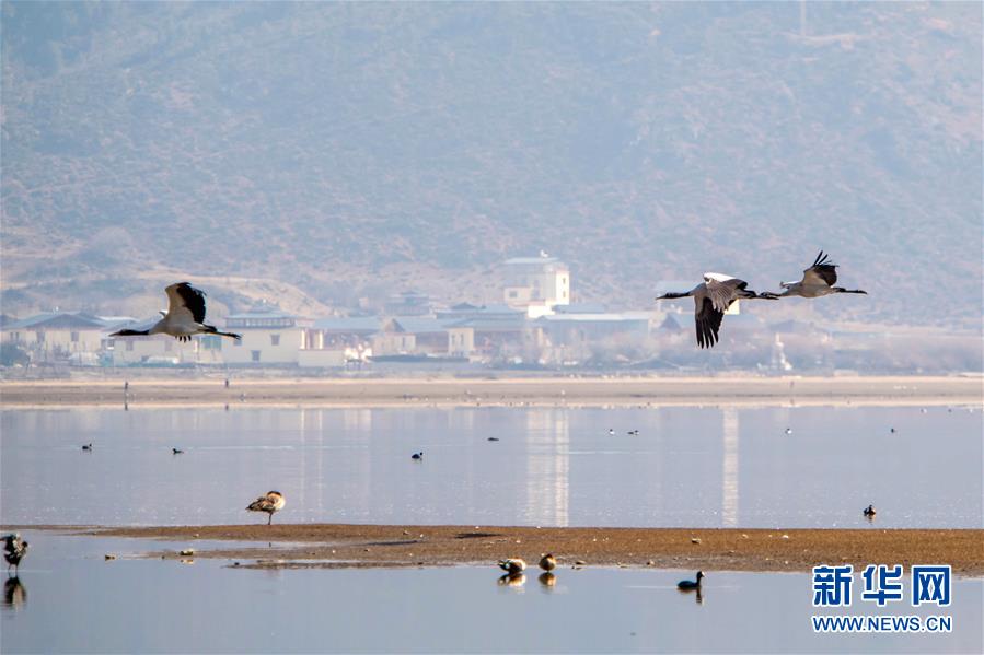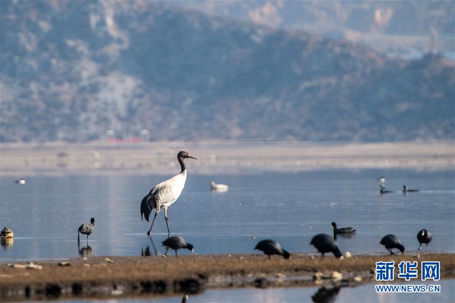 一些黑颈鹤和水鸟在纳帕海自然保护区栖息(3月11日摄)。云南省迪庆藏族自治州香格里拉市纳帕海自然保护区拥有完整的高原湿地生态系统,是国家一级重点保护野生动物黑颈鹤的越冬栖息地之一。近年来,当地生态环境保护力度不断加强,每年前来越冬的黑颈鹤数量超过300只。新华社记者 胡超摄