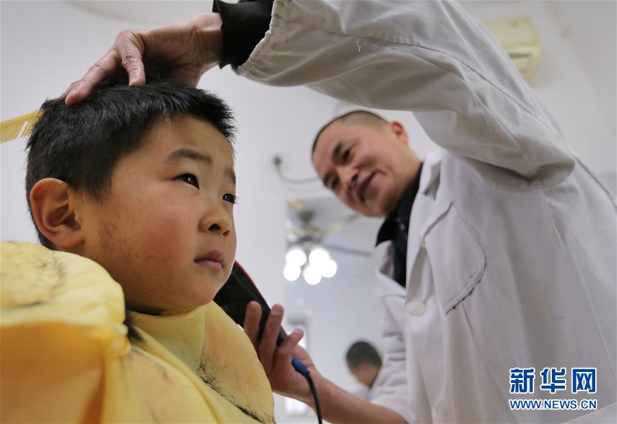 3月18日,在江苏省连云港市,一名小男孩在理发店理发。当日是农历二月初二,民间有“二月二,剃龙头”的传统习俗。