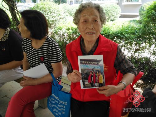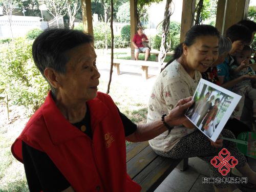 上午9时,红光社区的老人们相约来到绿茵长廊,零贰玖公益的志愿者们拿出事先打印好的照片交给老人们,大家看到清晰放大的照片,高兴的讲述照片的故事。