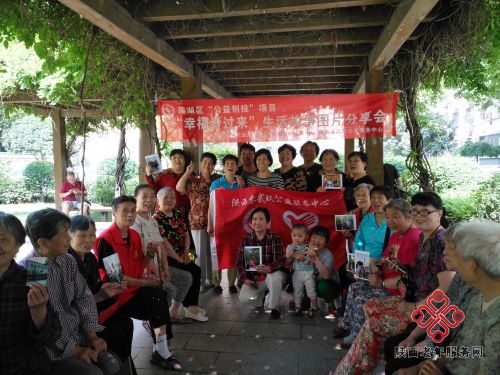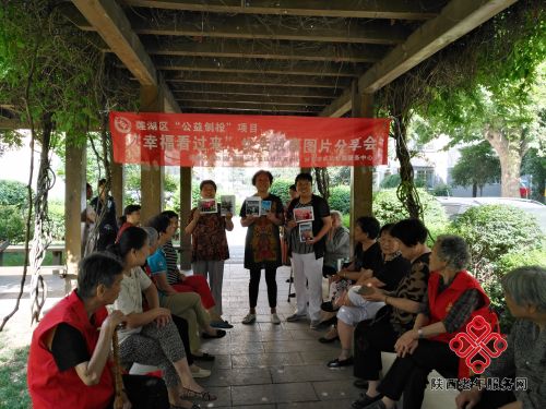 2018年5月31日上午,陕西零贰玖公益携手红光社区在西钢住宅小区的绿茵长廊开展了莲湖区公益创投项目“幸福看过来”生活故事图片分享会活动。