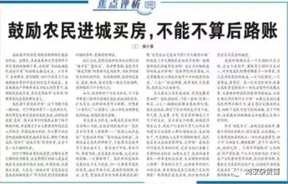 再次郑重表扬《农民日报》!该报昨天发表评论“鼓励农民进城买房,不能不算后路账”,明确批评一些地方用5万元购房补贴,就想让农民交出宅基地的做法不合理不公道。评论说的是国计民生的大事,逻辑清晰,语言生动,写得好极了!可参评今年中国新闻奖,可当做新闻传播教学的经典范文。前不久,《农民日报》就曾发评论“全县静默,庄稼没法静默”,严厉批评河南某县让下地打药的农民公开做检讨事件。那篇评论就写得很棒,俺以为这一篇比那篇更棒!附《农民日报》评论“鼓励农民进城买房,不能不算后路账”。