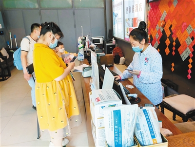 北大街一家酒店内,旅客正在前台办理业务。记者 窦翊明 摄