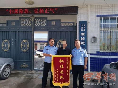 5月29日,刘某将一面写着“执法为民”的锦旗递到民警手中,感谢民警及时为其追回购买保健品受骗的经济损失。