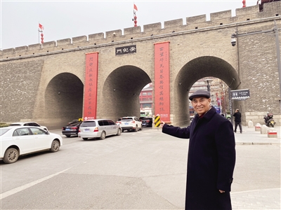 “西望那羌笛春风催万丝柳绿,门许这铜驼银雁看一日花红”。今年,田东海书写的春联挂在安定门(西门)门洞上,巧妙嵌入的地名与大气持重的字体相得益彰,将古城墙衬托得历史感、文化感愈发浓郁。